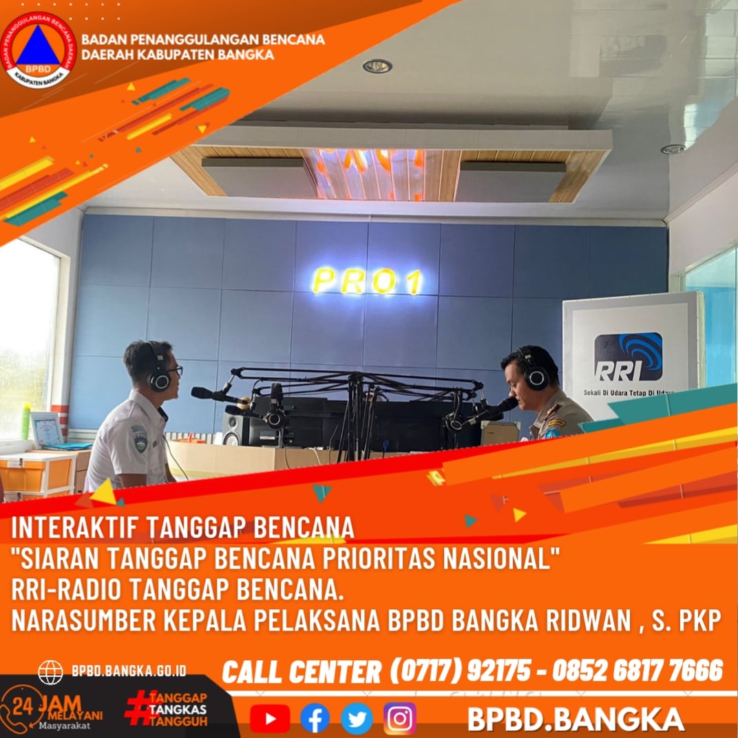 DIALOG INTERAKTIF TANGGAP BENCANA "SIARAN TANGGAP BENCANA PRIORITAS NASIONAL" RRI-RADIO TANGGAP BENCANA DI RRI SUNGAILIAT BERSAMA KEPALA PELAKSANA BPBD KAB. BANGKA RIDWAN S, P. PKP