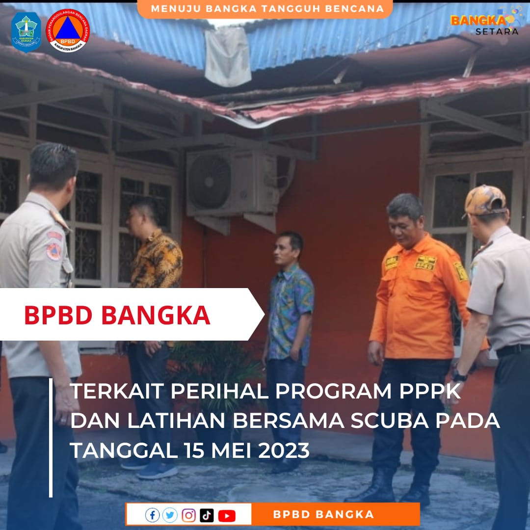 BPBD BANGKA - Kunjungan BPBD BANGKA TENGAH ke kantor BPBD BANGKA terkait dengan program PPPK dan PELATIHAN SCUBA , Pelatihan SCUBA akan dilakukasn latihan bersama BPBD BANGKA DAN BPBD BATENG di loka LOKA TIRTA SUNGAILIAT pada ( 15/05/2023).