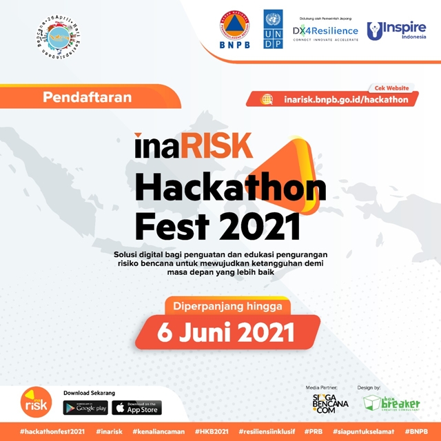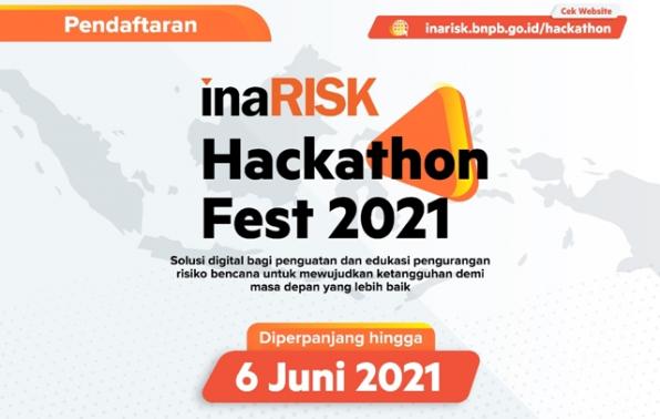 BNPB dan UNDP memperpanjang pendaftaran InaRISK Hackathon Fest (IHF) 2021 hingga 6 Juni 2021. Perpanjangan ini memberikan kesempatan yang lebih luas kepada masyarakat Indonesia dalam inovasi teknologi informasi di bidang kebencanaan.