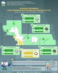 Perkiraan Cuaca terjadi hujan ringan di sekitaran perairan utara bangka, Perairan Selat Bangka, dan Perairan Selatan Bangka dengan Kecepatan angin 5-23 km/jam dan7-29 km/jam sedangkan tinggi gelombang mencapai 0,1- 1,5 m. Hujan Petir terjadi di perairan Selat Karimata dan Perairan Selat Karimata dan Perairan Selat Gelasa dengan Kecepatan angin 5-27 km/jam dan tinggi gelombang 0,1-1 m.