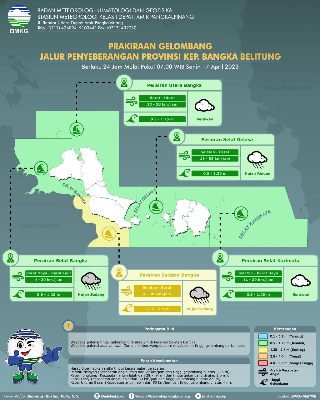PRAKIRAAN GEKOMBANG JALUR PENYEBRANGAN PROVINSI BANGKA BELITUNG PUKUL 07.00 WIB 17 APRIL 2023