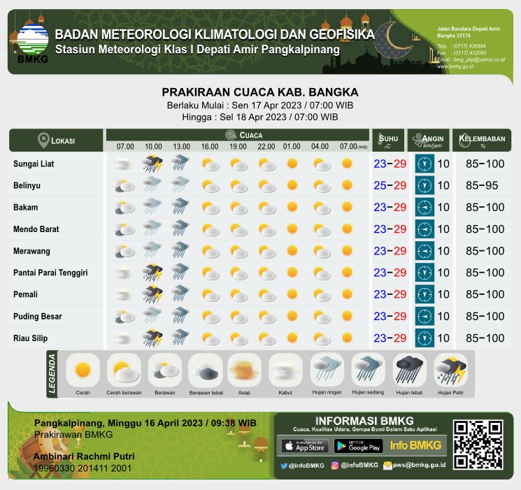 PRAKIRAAN CUACA KAB. BANGKA TANGGAL 17 APRIL PUKUL 07.00 WIB SAMPAI 18 APRIL PUKUL 07.00 WIB