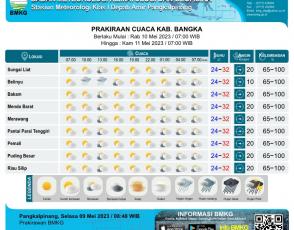 PRAKIRAAN CUACA KAB. BANGKA TANGGAL 10 MEI 2023 PUKUL 07.00 WIB HINGGA PUKUL 07.00 WIB 11 MEI 2023