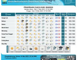 PRAKIRAAN CUACA KAB. BANGKA TANGGAL 17 MEI 2023 PUKUL 07.00 WIB HINGGA PUKUL 07.00 WIB TANGGAL 18 MEI 2023