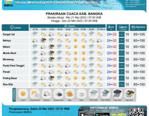 PRAKIRAAN CUACA KAB. BANGKA TANGGAL 20 MEI PUKUL 07.00 WIB HINGGA PUKUL 07.00 WIB TANGGAL 21 MEI 2023