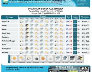 PRAKIRAAN CUACA KABUPATEN BANGKA TANGGAL 26 MEI 2023 PUKUL 07.00 WIB HINGGA TANGGAL 27 MEI 2023 PUKUL 07.00 WIB