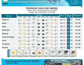 PRAKIRAAN CUACA KAB. BANGKA TANGGAL 09 MEI 2023 PUKUL 07.00 WIB HINGGA 07.00 WIB 10 Mei 2023
