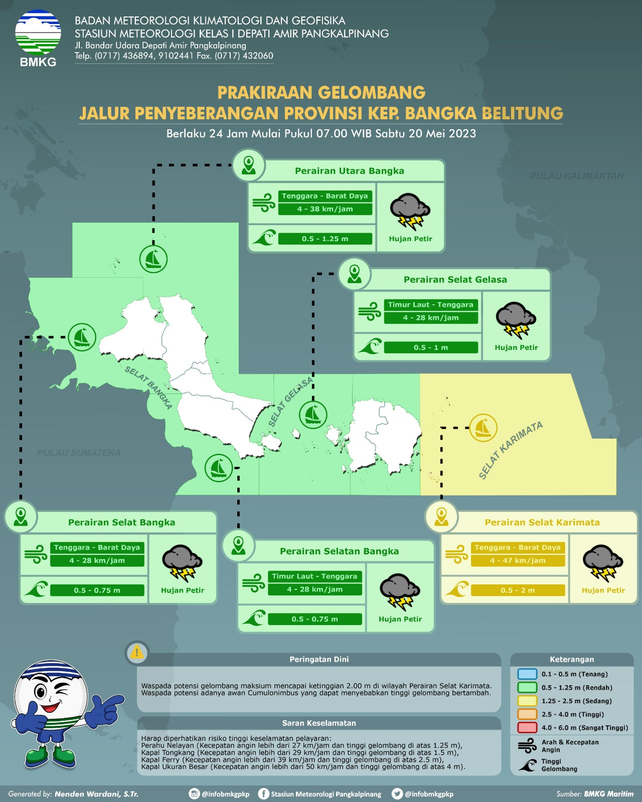 PRAKIRAAN GELOMBANG JALUR PENYEBRANGAN PROVINSI BANGKA BELITUNG TANGGAL 20 MEI 2023 PUKUL 07.00 WIB