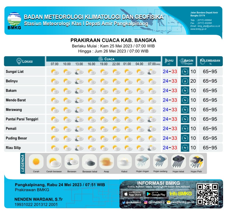 PRAKIRAAN CUACA KAB. BANGKA TANGGAL 25 MEI PUKUL 07.00 WIB HINGGA PUKUL 07.00 WIB TANGGAL 26 MEI 2023