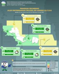 Perkiraan gelombang kategori rendah di Perairan Selat Gelasa dengan cuaca hujan petir dan arah dan kecepatan angin Timur-Selatan 11-38 km/jam dan tinggi gelombang 0,5-1 m; Perairan Selatan Bangka cuaca verah berawan dengan arah dan kecepatan angin Timur-Selatan 11-28 km/jam dan tinggi gelombang 0,5-1 m; Perairan Selat Bangka cuaca cerah berawan dengan arah dan kecepatan perairan Timur-Selatan 4-28 km/jam dan tinggi gelombang 0,5-1 m. Kategori sedang di Perairan Utara Bangka cuaca hujan petir dengan arah dan kecepatan angin timur-selatan 4-38 km/jam dan tinggi gelombang 0,5-1,5 m; Perairan Selat Karimata cuaca hujan petir dengan arah dan kecepatan angin timur-selatan 11-38 km/jam dan tinggi gelombang 0,5-1,5 m.