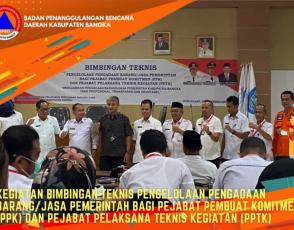 RABU 08/02/2023 , SUNGAILIAT - Kepala pelaksana (BPBD) kabupaten bangka Ridwan, S. PKP dan kasi kedaruratan dan logistik Nazarudin, SH, menghadiri kegiatan bimbingan teknis pengelola pengadaan barang /jasa .