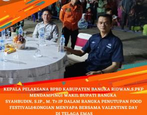 BPBDBANGKA, BANGKA - Kepala Pelaksana BPBD Kabupaten Bangka bapak Ridwan, S.Pkp mendampingi Wakil Bupati Bangka Bapak Syahbudin, S.IP., M. Tr.IP dalam Rangka Penutupan Food Festival&Kongian Menyapa Bersama Valentine Day di Wisata...