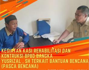 BPBDBANGKA, BANGKA- Kasi Rehalibitasi dan Kontruksi BPBD BANGKA Bapak YURIZAL ,SH. memimpin langsung terkait bantuan bencana (Pasca Bencana) ke salah satu rumah warga yang mengalami kerusakan pada Minggu, 12 Februari 2023 ...