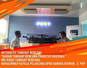 BPBDANGKA, BANGKA - Kepala Pelaksana BPBD Kab. Bangka RIDWAN S, P. PKP berkolaborasi dengan BMKG Pangkalpinang menjadi narasumber di RRI Sungailiat , mengenai Dialog Interaktif Tanggap Bencana "Siaran Tanggap Bencana Prioritas Nasional" RRI-RADIO...